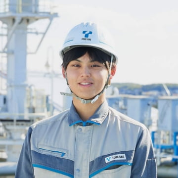 ガスを製造する工程では、さまざまな設備が用いられています。それらのオペレーションや点検を行っていくのが、私たち製造課の仕事です。設備保全のプロフェッショナルらと連携を密にして、安全かつ安定的なガスの製造を支えていきます。昼夜それぞれに業務を行う二交替勤務は、私にとって大きな成長機会になっています。一つひとつの設備がどのような役割を果たしていて、どのような特徴があるのか。自然災害時や万一のガスの漏洩時にどう対応していくのか。今の仕事に必要なものをしっかりと学ぶことができています。夜間の仕事に不安を感じる人もいるかもしれませんが、自らの能力を向上させ、使命感を強く実感できるいい機会になることは間違いありません。