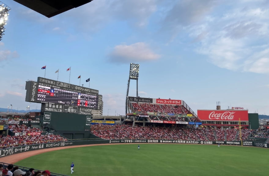 仕事終わりや休日に、野球観戦に行くのが好きです!(写真は職場の上司・先輩と行ったマツダスタジアムです)