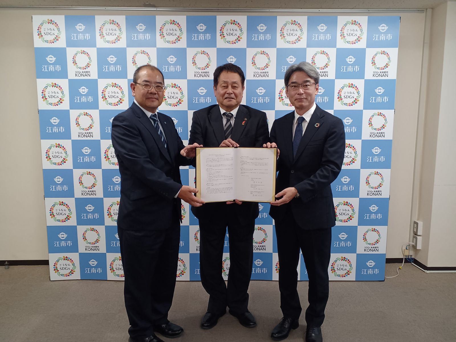 左から、吉崎 直己 東邦ガス尾張地域支配人、澤田 和延 江南市長、嘉藤 将弥 東邦ガスネットワーク取締役
