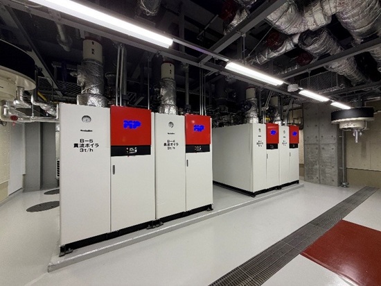 本事業では、ビル内で発生した排水の熱を再利用する「熱回収ヒートポンプ」を中部地方の熱供給施設で初めて採用し、効率的なエネルギー利用を実現します。また、耐震性に優れた中圧A導管での都市ガス供給と、特別高圧を2回線で受電し停電リスクを低減することで、防災性の高いエネルギーセンターを構築しました。