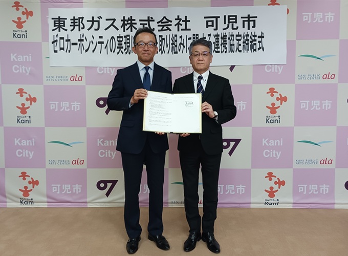 東邦ガス株式会社(社長:山碕 聡志)は、本日、可児市(市長:冨田 成輝)と「ゼロカーボンシティの実現に向けた取り組みに関する連携協定」(以下「本協定」)を締結し、本協定を通じて、家庭用燃料電池システム「エネファーム」※1などの導入によるCO2削減プロジェクト(以下「本プロジェクト」)を開始します。