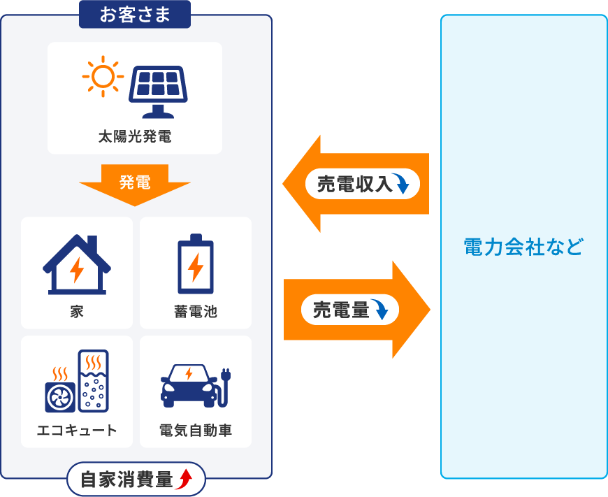 太陽光発電を設置しているお客さまは、太陽光発電で発電した電気を多く利用するため、売電収入が減少し、最適な電気料金プランとならない場合があります。