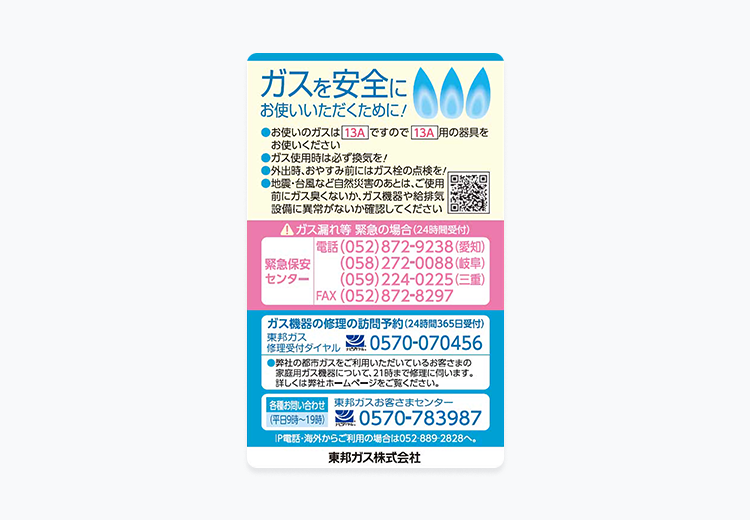 - ガス機器ごとの安全な使用方法について、4年に1回以上の安全点検で対面した際にお客さまへ説明しています。