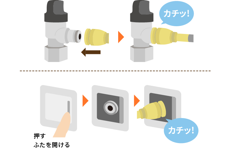 接続する場合には、ガス機器および接続具の取扱説明書をよく読んでいただきその内容を理解し、接続していただくことが大切です。