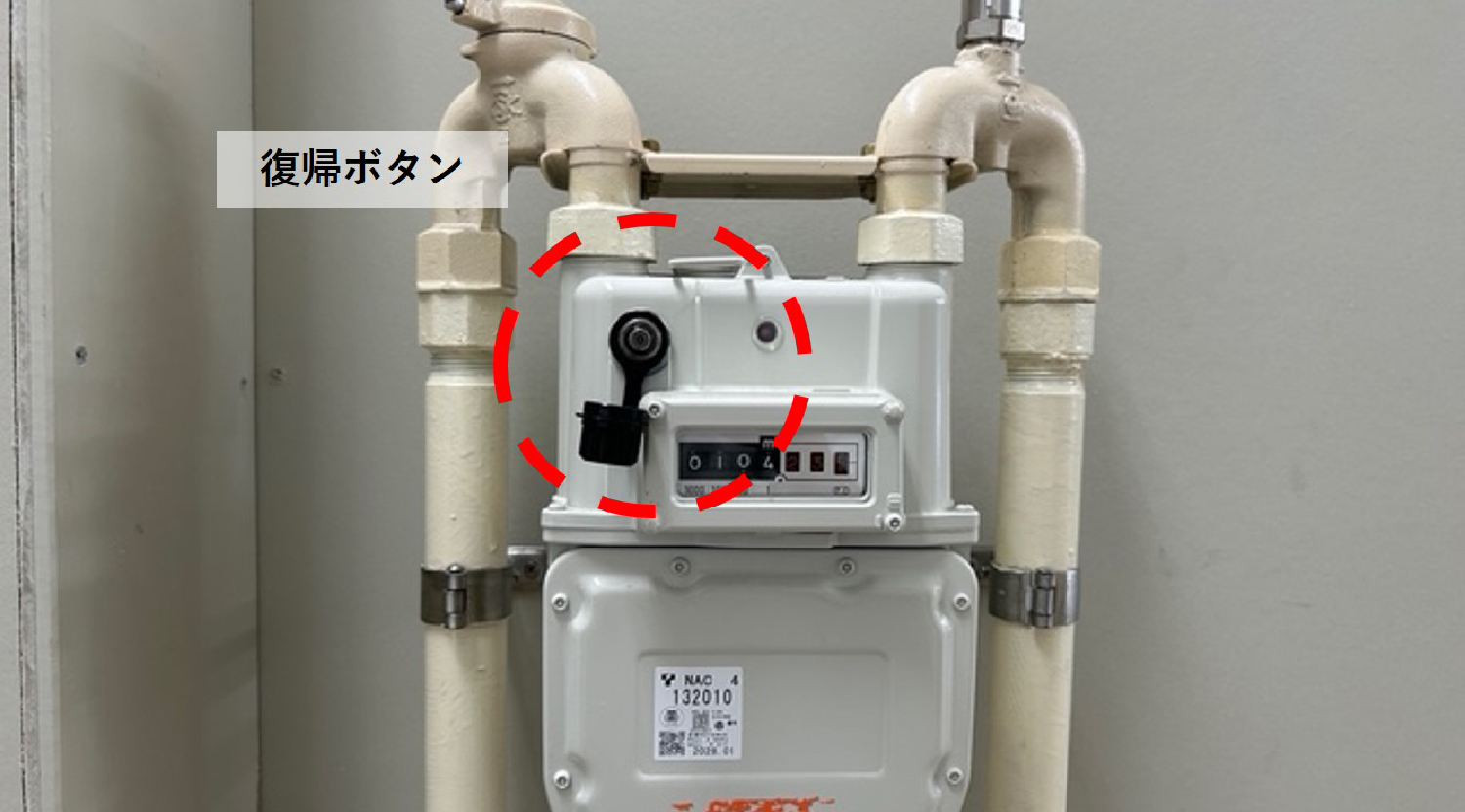 大きな地震などでガスメーターの安全装置が作動すると、自動的にガスが遮断されることがあります。メーターにエラーランプが点灯している場合は、メーターの復帰ボタンを押して約3分待ちます。操作方法はメーターの種類などによって異なるため、不明な場合はガス会社に問い合わせることが確実です。