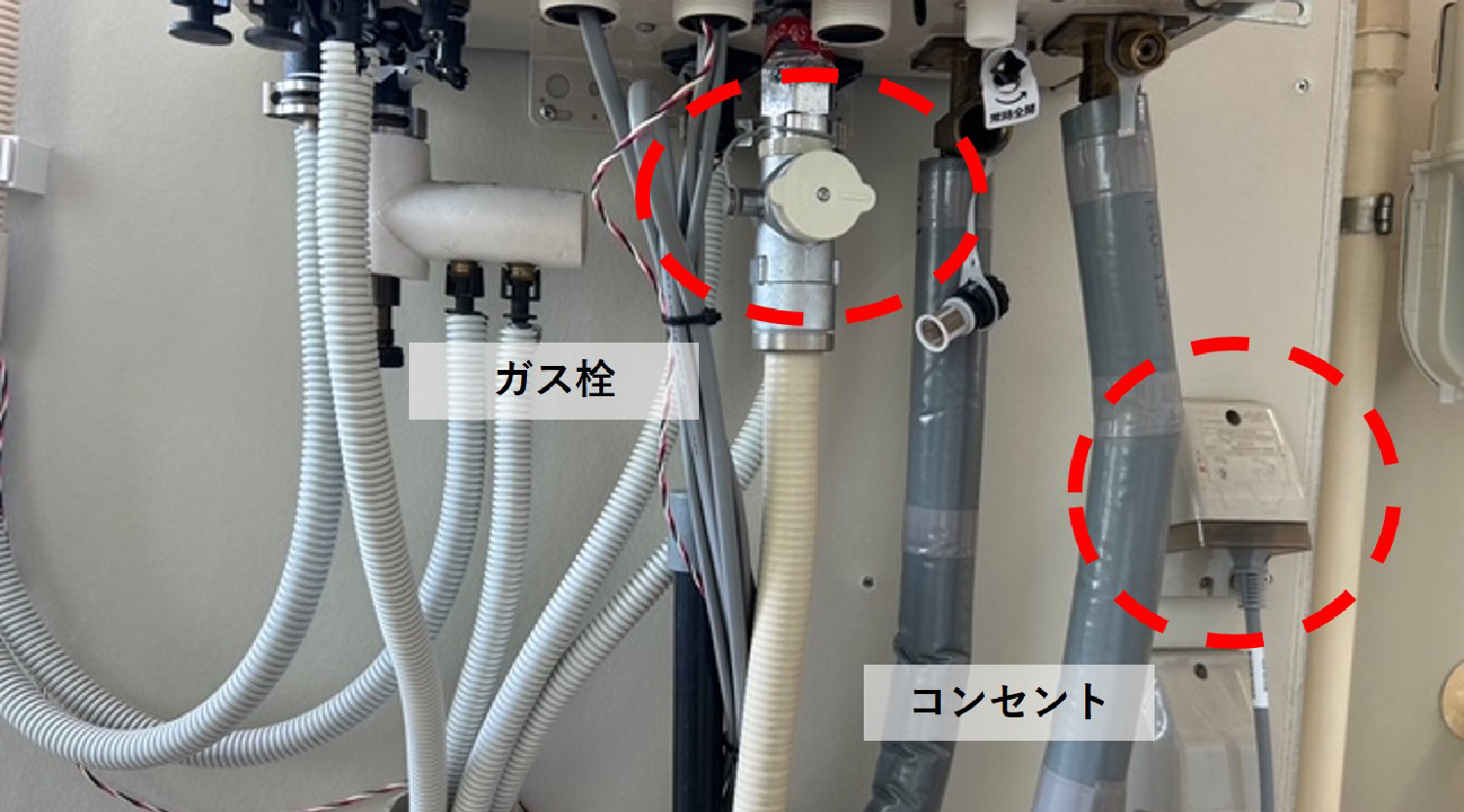 意外と見落としがちなのが給湯器本体のコンセント抜けです。掃除や家具の移動時にコンセントが外れてしまうケースがあります。給湯器の電源が確保されていなければ動作しないため、まずは簡単なところから確認しましょう。
