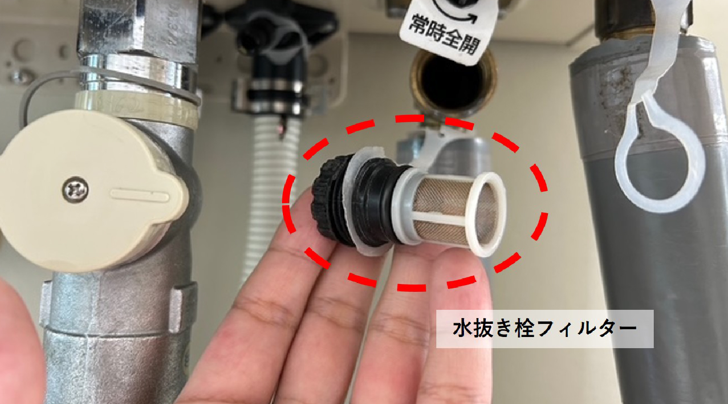 給湯器本体に設置されているフィルターが目詰まりすると、水量が不十分になってお湯が出ないことがあります。定期的にフィルターを清掃しておくことで、トラブルの予防につながります。