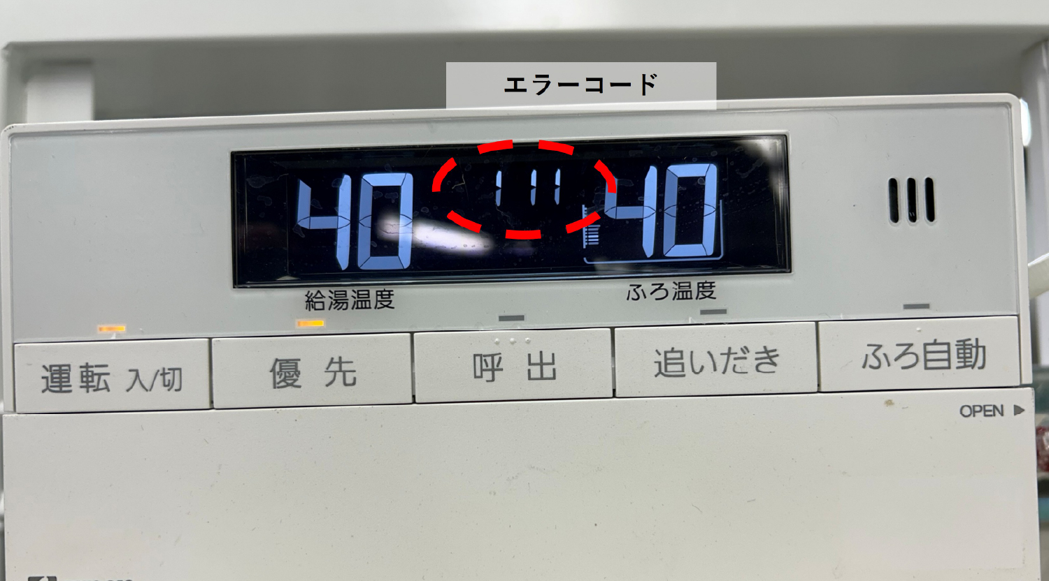 給湯器のリモコンにエラーコードが表示された場合は、まず取扱説明書やインターネットなどでエラーコードの意味を確認しましょう。単なるリセット(運転ボタンを「切」にして再び「入」にすること)で改善することもありますが、繰り返し同じエラーが出る場合は修理や点検などが必要になるため、早めに専門業者へ相談しましょう。