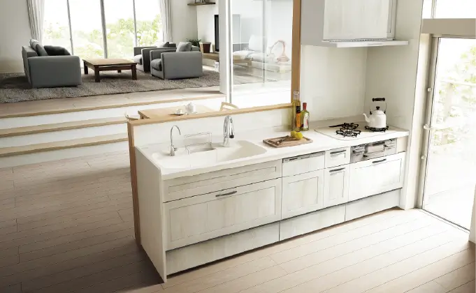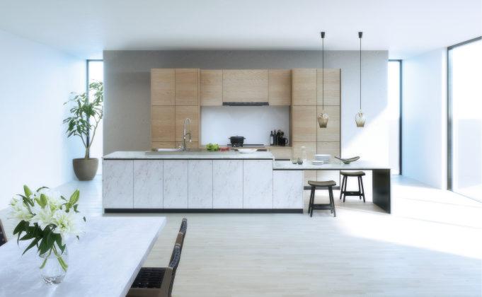 もっとスムーズに食材の準備から片付けまで、スムーズな動線をご提案します。ご家庭に合わせて「I型」「L型」「U型」などのレイアウトを選べば、理想のキッチンの実現につながります。