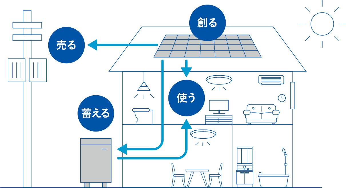- 購入する電力量の削減はもちろん、停電など非常時の備えとしても安心です。