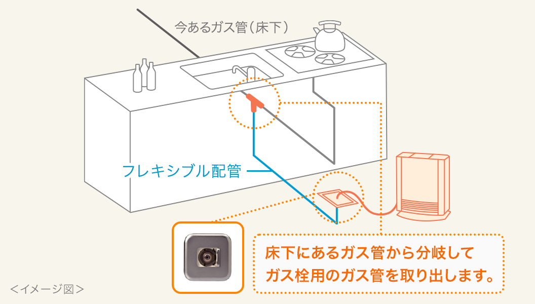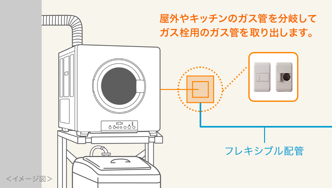 ガス栓と電気コンセントにつなぐだけ。簡単に設置が可能です。
