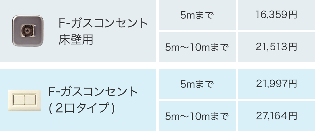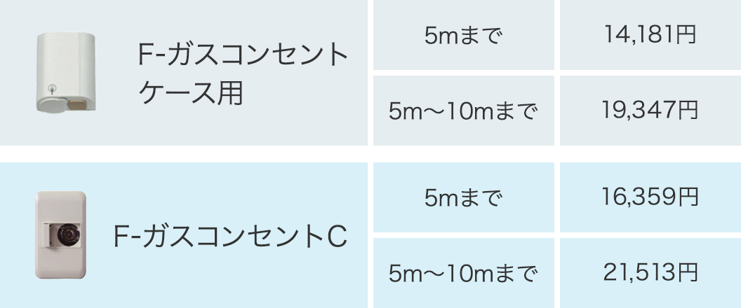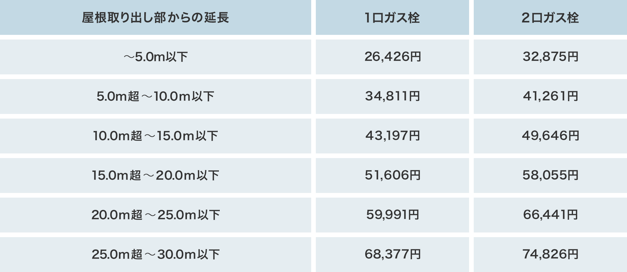 - ※2 上記の表のm数は取出し口部分からガス栓までの長さです、また上記取付工事費は見積と同時施工で同一室内での分岐工事に限ります。