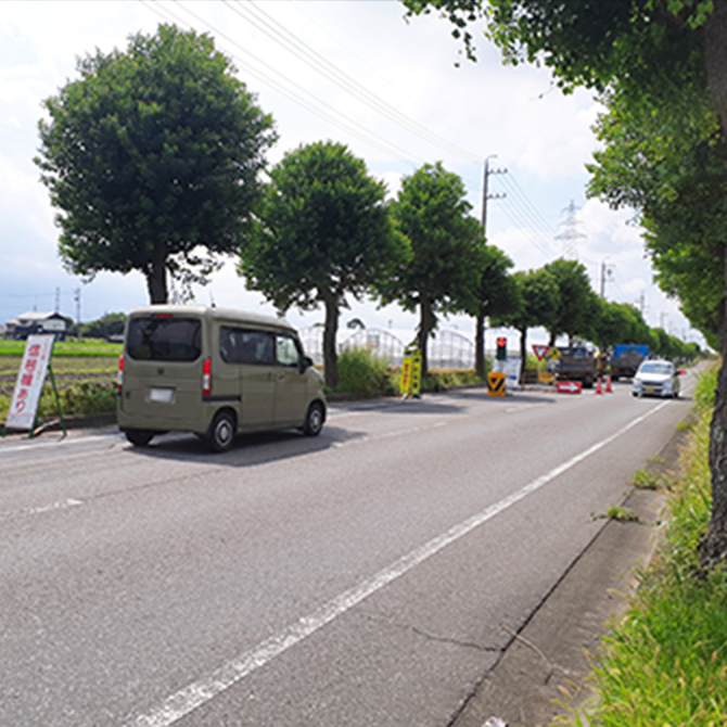 - 道路条件は、片側一車線道路で、「片側交互通行」(枝道を含む場合も適用可能、さらなる適用現場拡大検討中)の現場