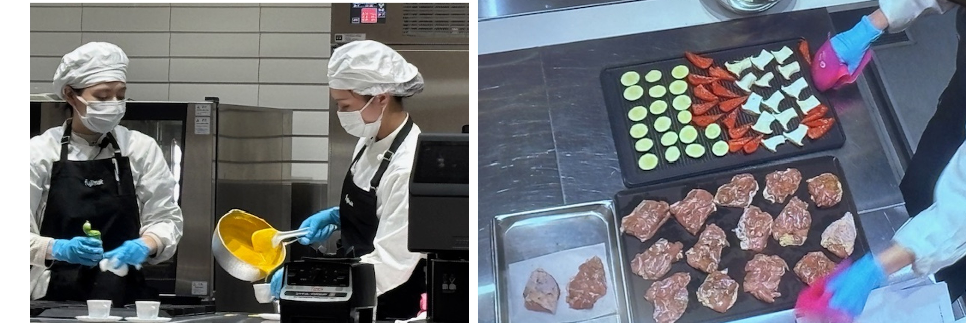 「コンビオーブン・パコジェット・バイタミックスを使用しての調理実演、再加熱カート/キャビネットの紹介」