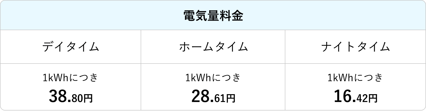 デイタイム(平日10~17時)、ホームタイム(平日8~10時/17時~22時 休日8~22時)の電力量料金は同じです。