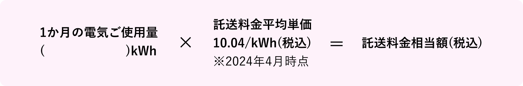 低圧電気料金プランのお客さまにつきましては、下記計算式に1か月のご使用量を当てはめて計算いただくことで、託送料金相当額を算出することができます。